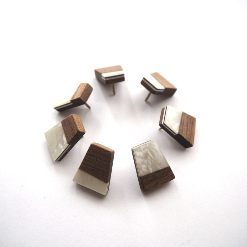 ギターのピックガードに使用される材料を、ウォルナット材に組み合わせて、小さな山を作りました。